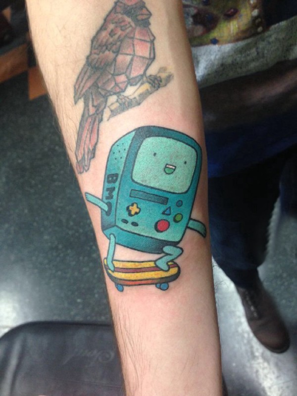 男生手臂上彩绘水彩素描创意可爱机器人纹身图片