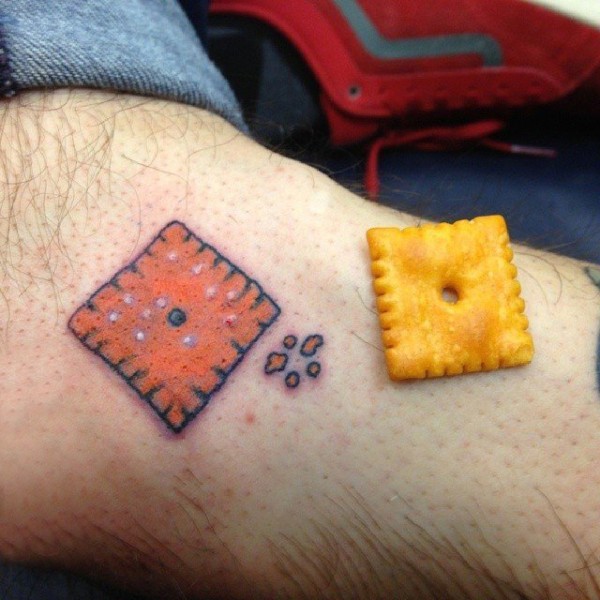 男生小腿上彩绘几何线条饼干美味食物纹身图片