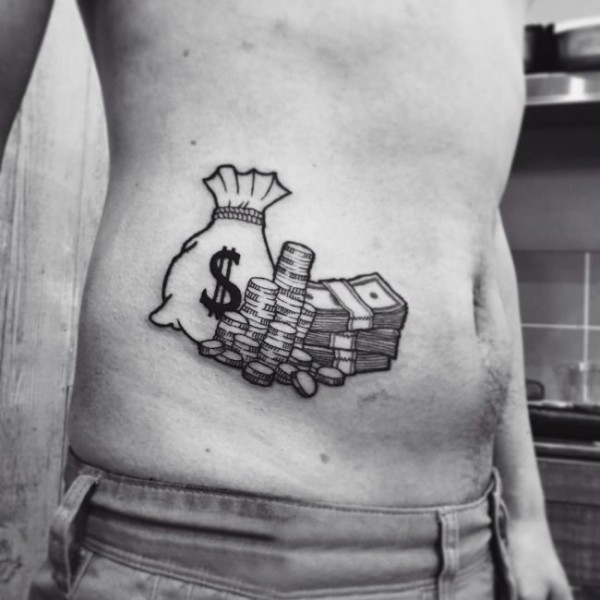 堆金积玉的创意几何元素简单线条货币纹身图案