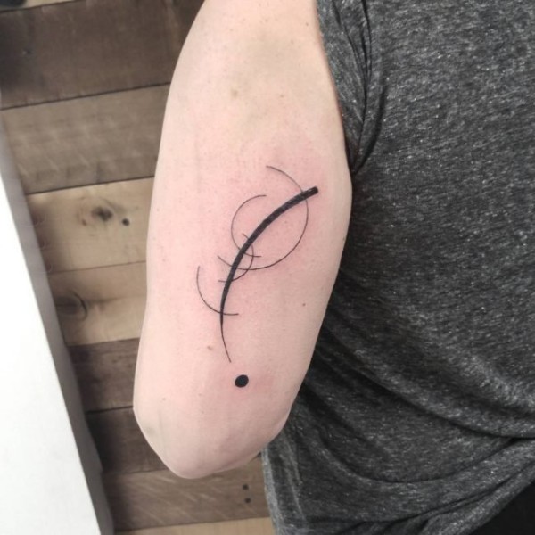 男生手臂上黑色线条几何元素抽象线条纹身图片
