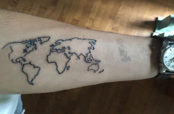 男生手臂上黑色抽象线条创意世界地图纹身图片