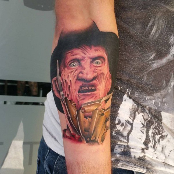 男生手臂上彩绘水彩素描创意男生人物恐怖纹身图片