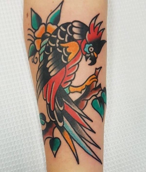 男生手臂上彩绘水彩素描创意文艺小鸟纹身图片