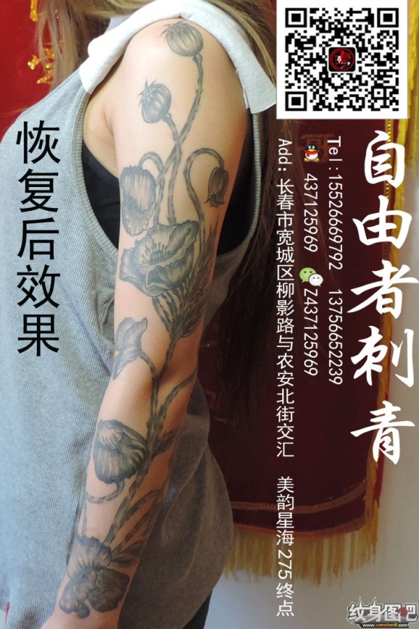 罂粟花纹身 长春自由者刺青