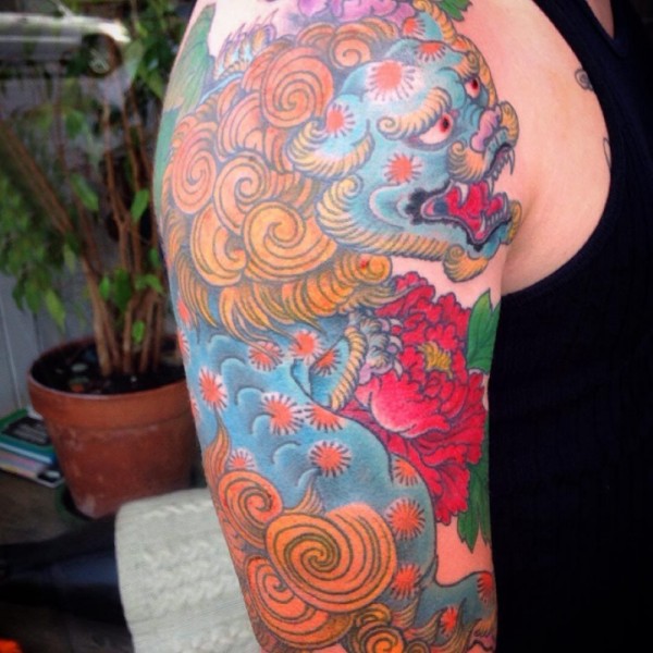 日本传统的彩绘简单抽象线条小动物狮子纹身图案