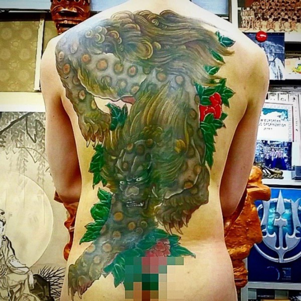 日本传统的彩绘简单抽象线条小动物狮子纹身图案