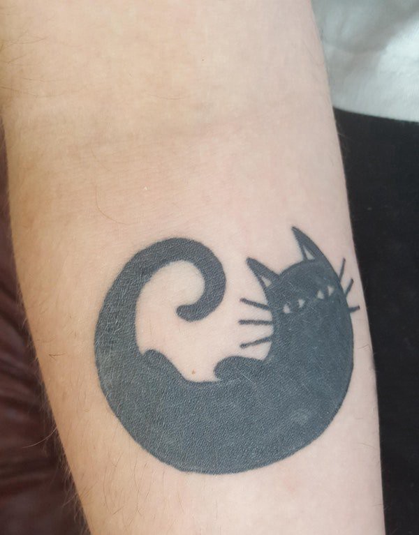 女生手臂上黑色简单线条小动物抽象猫咪纹身图片