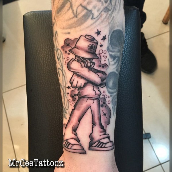 男生手臂上黑灰素描点刺技巧创意人物纹身图片