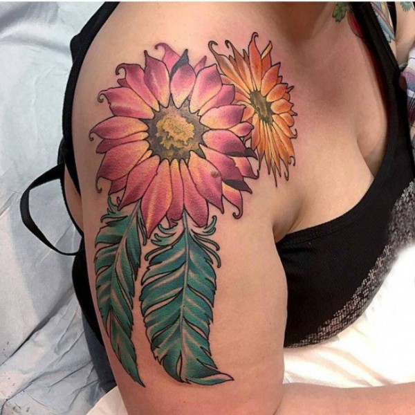 草图感向日葵纹身图案_植物纹身图案大全_纹身图吧