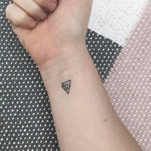 男生手臂上黑色线条几何元素创意三角形纹身图片