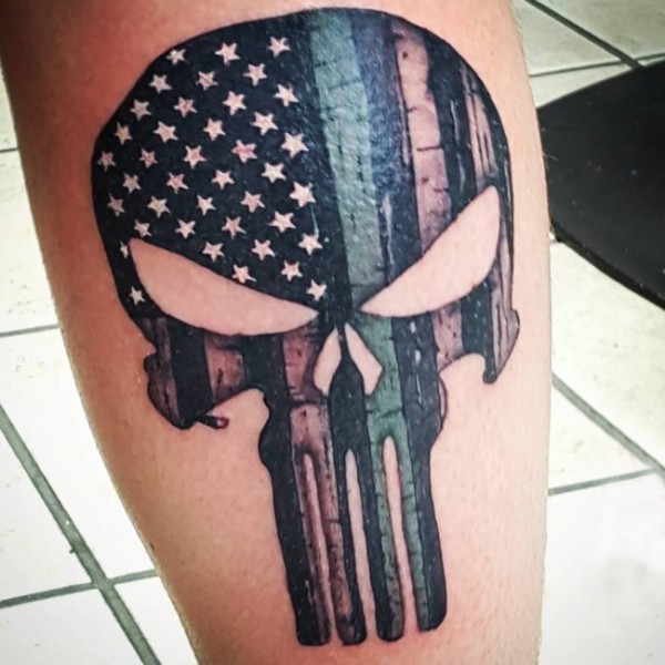 男生手臂上彩绘水彩素描创意恐怖骷髅国旗纹身图片