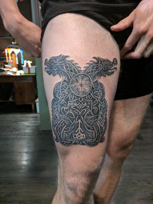 花腿纹身--一组大黑腿纹身图案作品欣赏