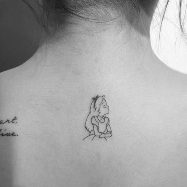 女生后腰纹身黑白灰风格抽象线条纹身图案