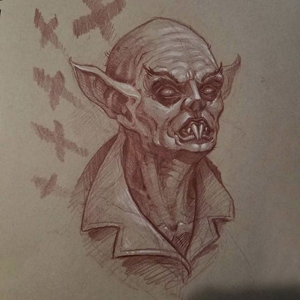 奇特又别致的黑灰点刺抽象线条怪物纹身手稿