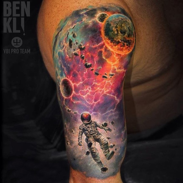 绚丽的彩绘几何抽象线条宇宙星空元素星球纹身图案