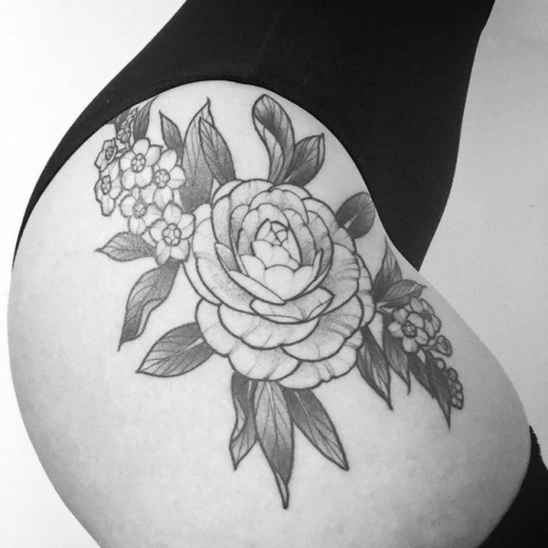 女生臀部黑色黑刺技巧简单线条植物文艺花朵纹身图片
