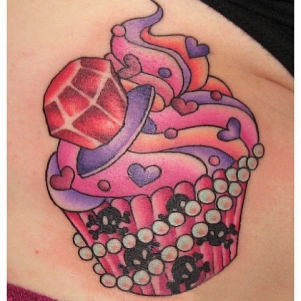 女生手臂上彩绘几何抽象线条杯子蛋糕和钻石纹身图片