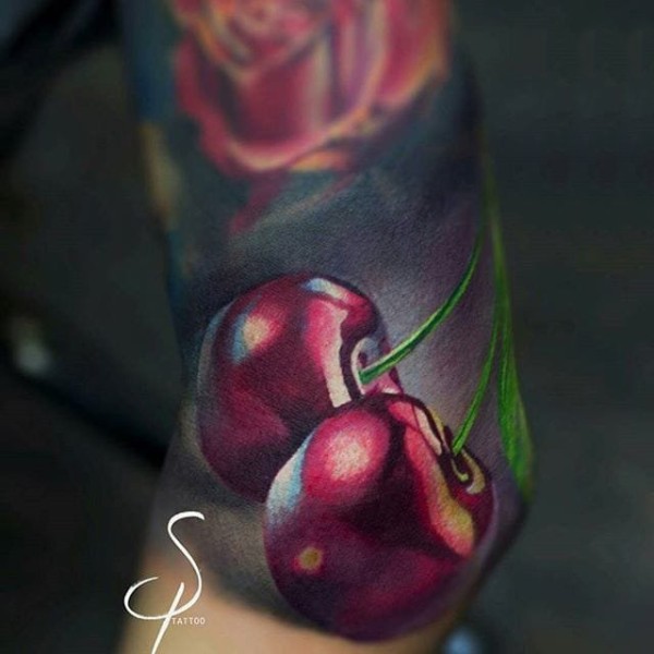 酸甜可口的彩绘几何简单线条水果樱桃纹身图案