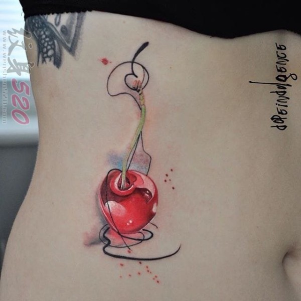酸甜可口的彩绘几何简单线条水果樱桃纹身图案