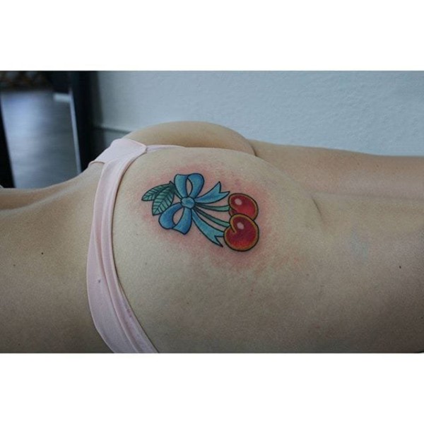 酸甜可口的彩绘几何简单线条水果樱桃纹身图案