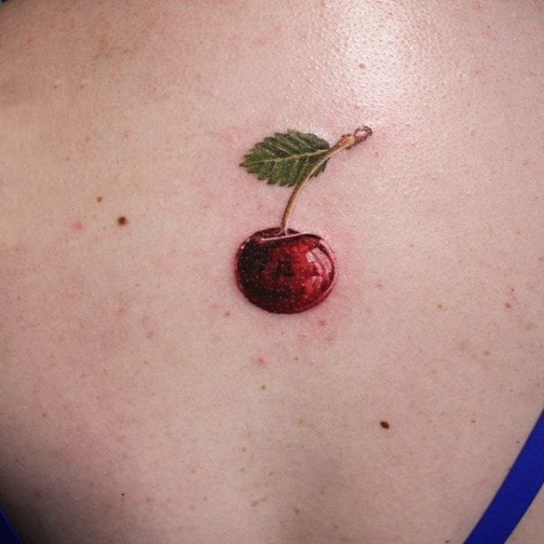 酸甜可口的彩绘几何简单线条水果樱桃纹身图案