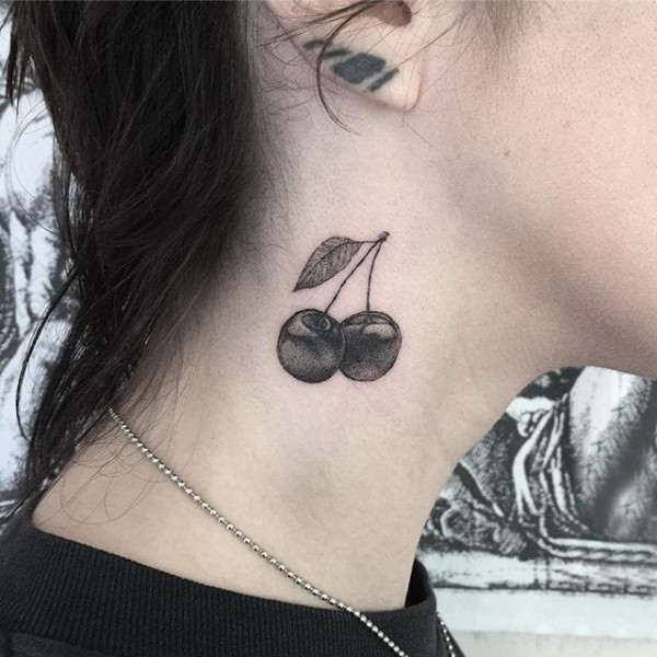 酸甜可口的彩绘几何简单线条水果樱桃纹身图案