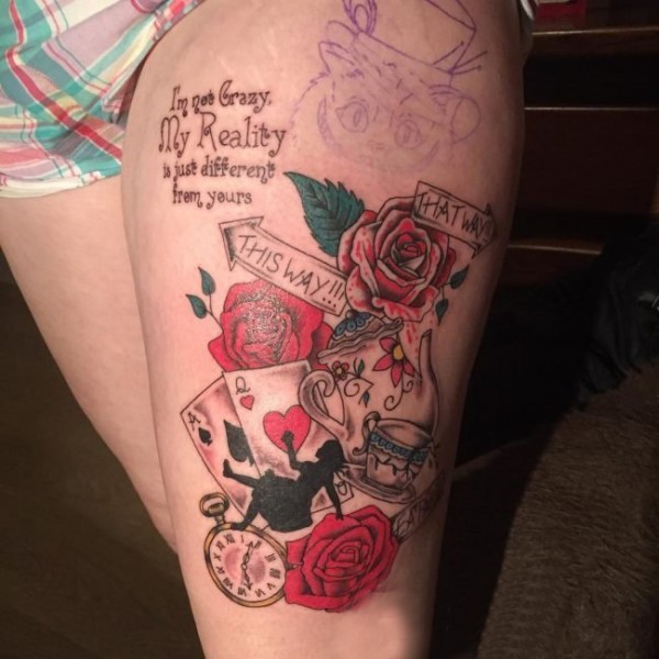 女生大腿上彩绘水彩素描创意文艺唯美花朵纹身图片