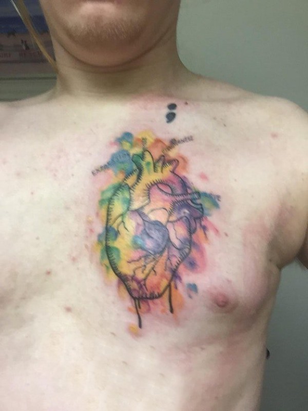 男生胸部彩绘渐变抽象线条心脏纹身图片
