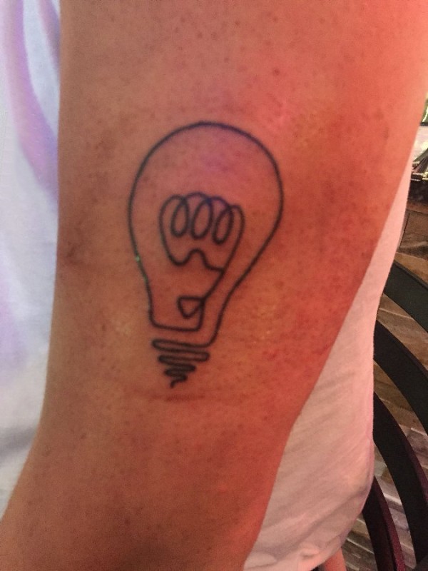 男生手臂上黑色抽象线条创意灯泡纹身图片