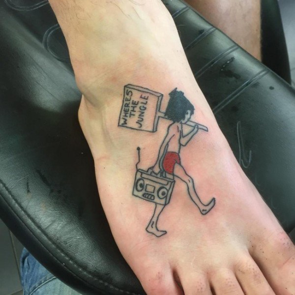 男生脚背上彩绘几何简单线条卡通人物创意纹身图片