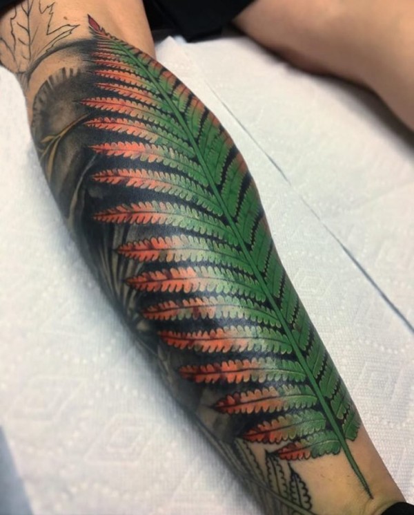 男生手臂上彩绘水彩素描创意文艺树叶纹身图片
