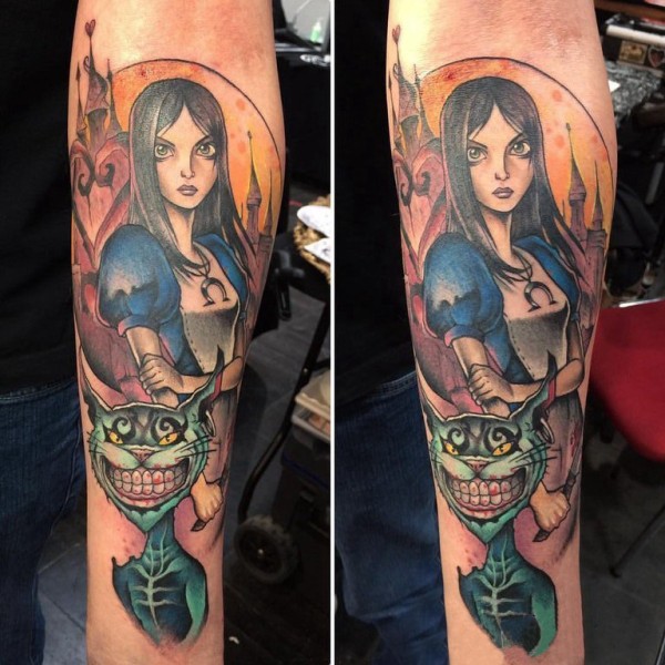 男生手臂上彩绘水彩素描女生人物纹身图片