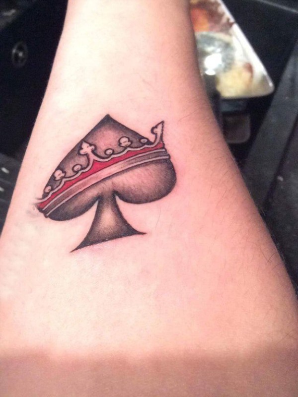 男生手臂上黑灰素描点刺技巧创意黑桃纹身图片