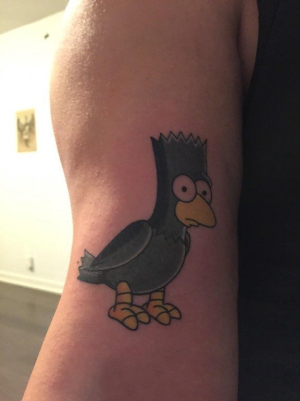 男生手臂上彩绘简单线条卡通小动物乌鸦纹身图片