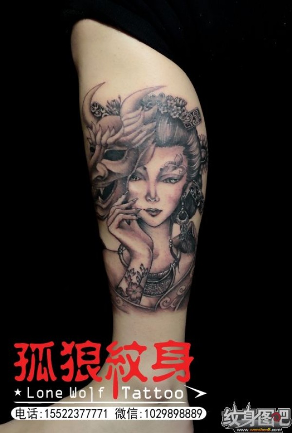 宝坻纹身 小腿艺妓纹身 孤狼纹身工作室作品 天津
