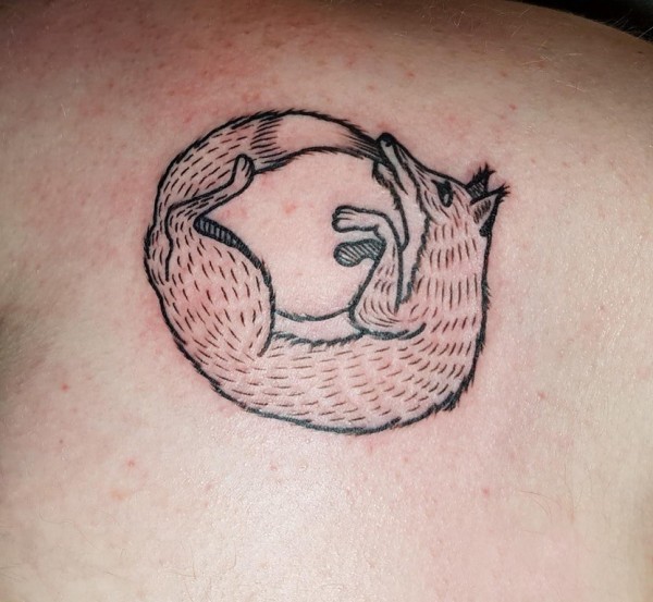 男生肩膀上黑色线条素描创意文艺狐狸纹身图片