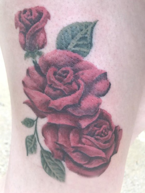 男生大腿上彩绘水彩素描文艺唯美玫瑰纹身图片