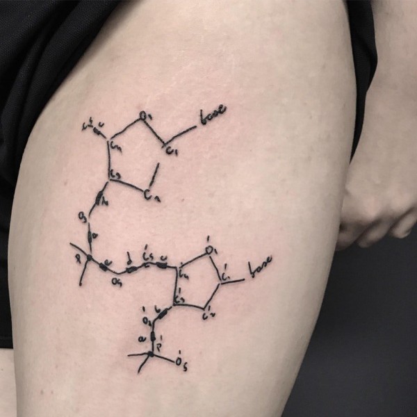 男生手臂上黑色线条创意化学元素纹身图片