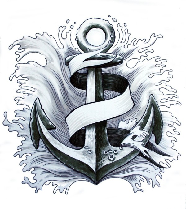 黑灰素描创意海军风创意船锚纹身手稿