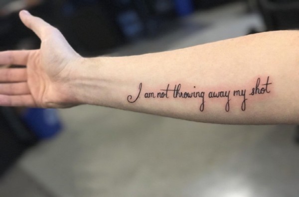 男生手臂上黑色线条文艺小清新精美花体英文纹身图片