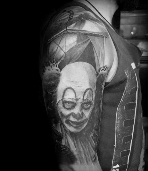 精彩纷呈的黑色点刺简单线条创意马戏团纹身图案