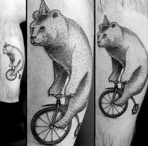精彩纷呈的黑色点刺简单线条创意马戏团纹身图案
