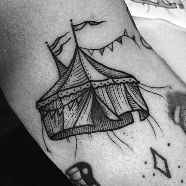 精彩纷呈的黑色点刺简单线条创意马戏团纹身图案