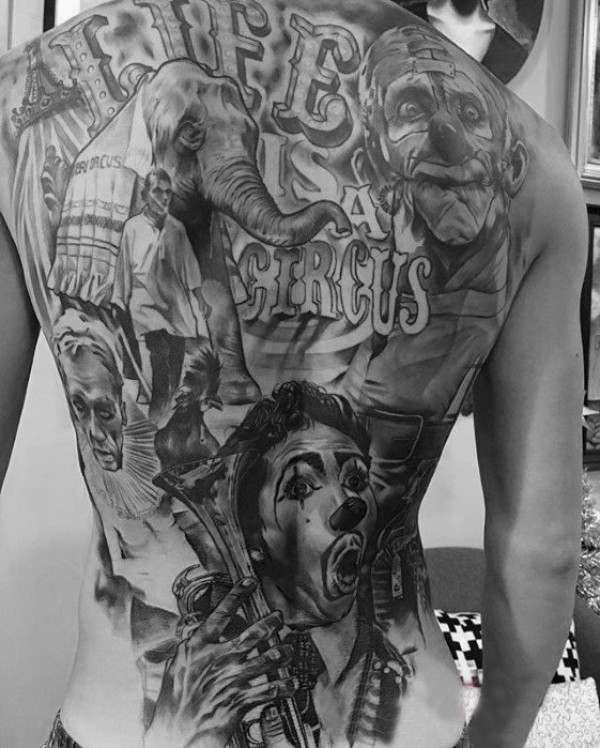 精彩纷呈的黑色点刺简单线条创意马戏团纹身图案