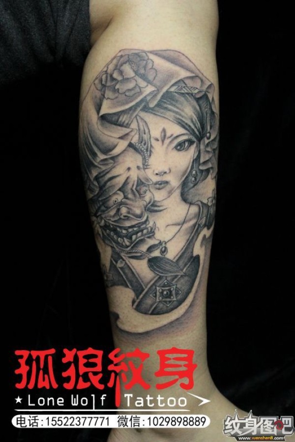 宝坻纹身 小腿艺妓纹身 孤狼纹身工作室作品 天津