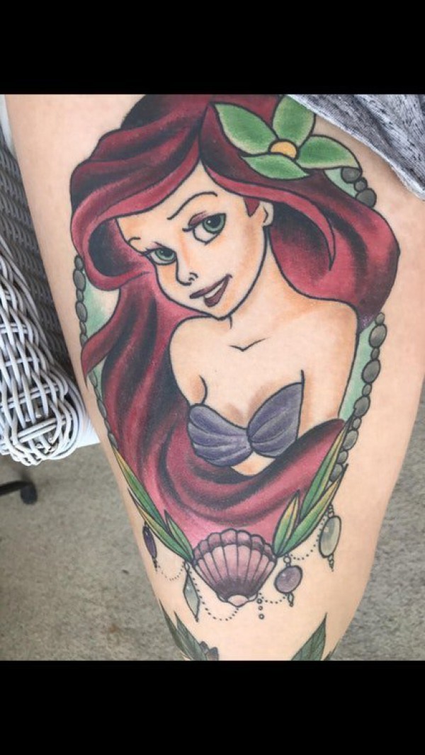女生大腿上彩绘水彩素描创意迪士尼卡通纹身图片