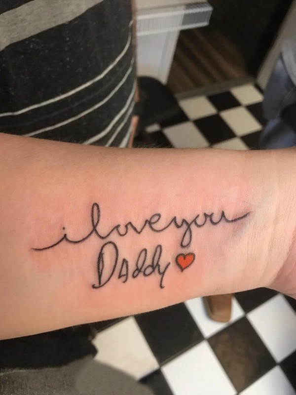 女生手臂上彩绘几何抽象线条心形和英文单词纹身图片