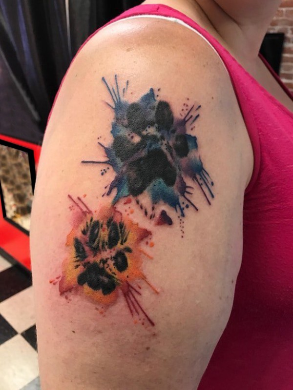 女生手臂上彩绘渐变泼墨简单线条可爱爪印纹身图片