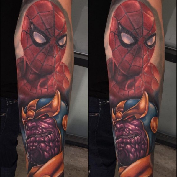 英勇正义的彩绘几何简单线条人物蜘蛛侠纹身图案