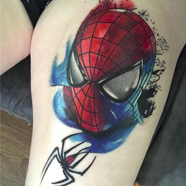 英勇正义的彩绘几何简单线条人物蜘蛛侠纹身图案